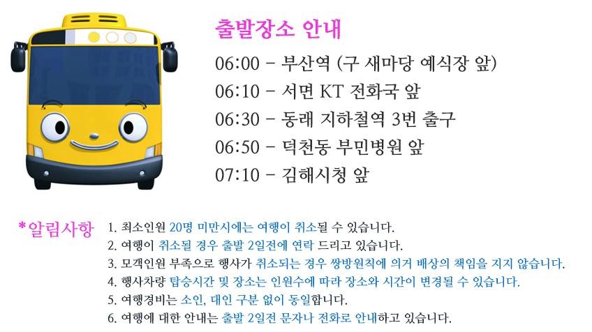 매주 화, 목, 토 출발 ( 신분증 지참 )