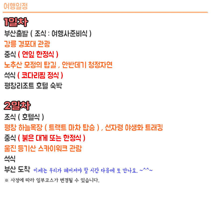 여행출발 1일전-출발당일 취소 및 변경시 환불되지 않습니다.