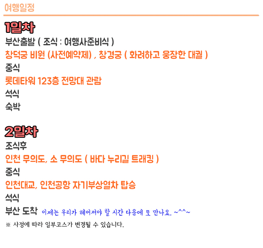 여행출발 1일전-출발당일 취소 및 변경시 환불되지 않습니다.