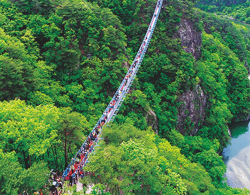 소금산을 위감아도는 삼산천의 아름다운 절경을 고도 200m 높이에서